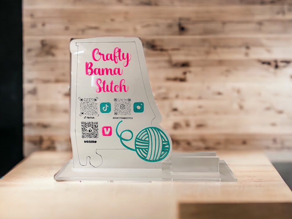 Introducing our fully customizable "Let's Get Social" acrylic business sign, the perfect addition to any business wishing to boost their social media presence and client engagement. This versatile sign invites customers to connect with your brand across social media platforms, offering a direct link through a scannable QR code that can be tailored to direct to your specific online destination.