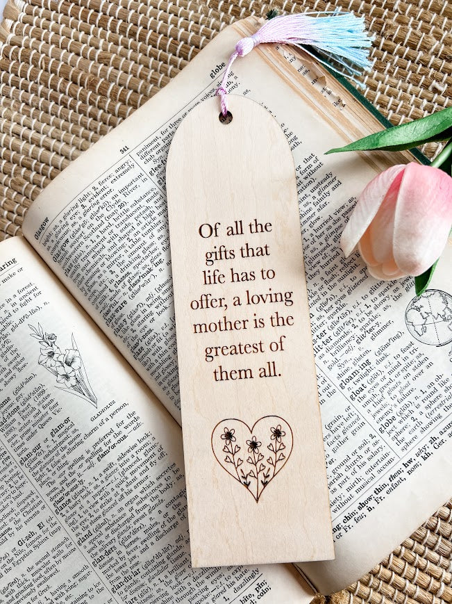 Surprise Mom with a beautifully engraved wooden bookmark! Made from natural birch wood, this sentimental keepsake features a heartfelt message about motherhood, available in five different variations.