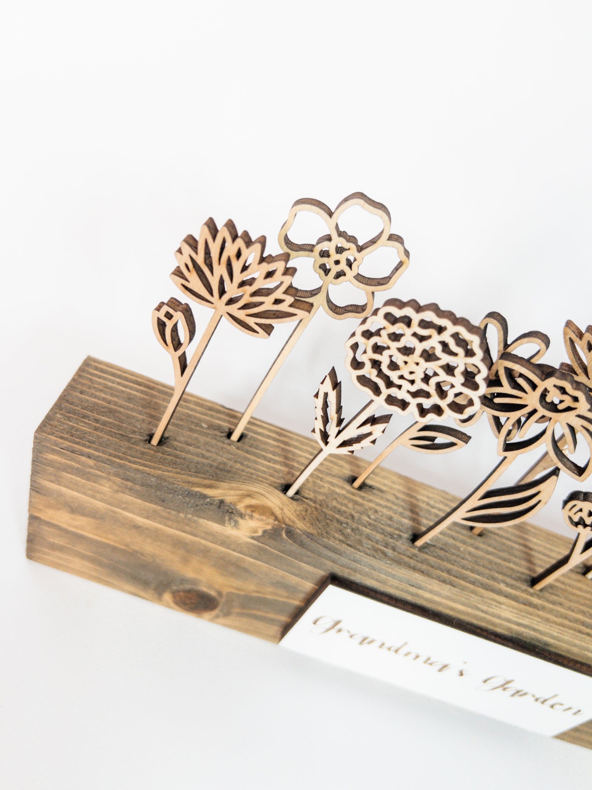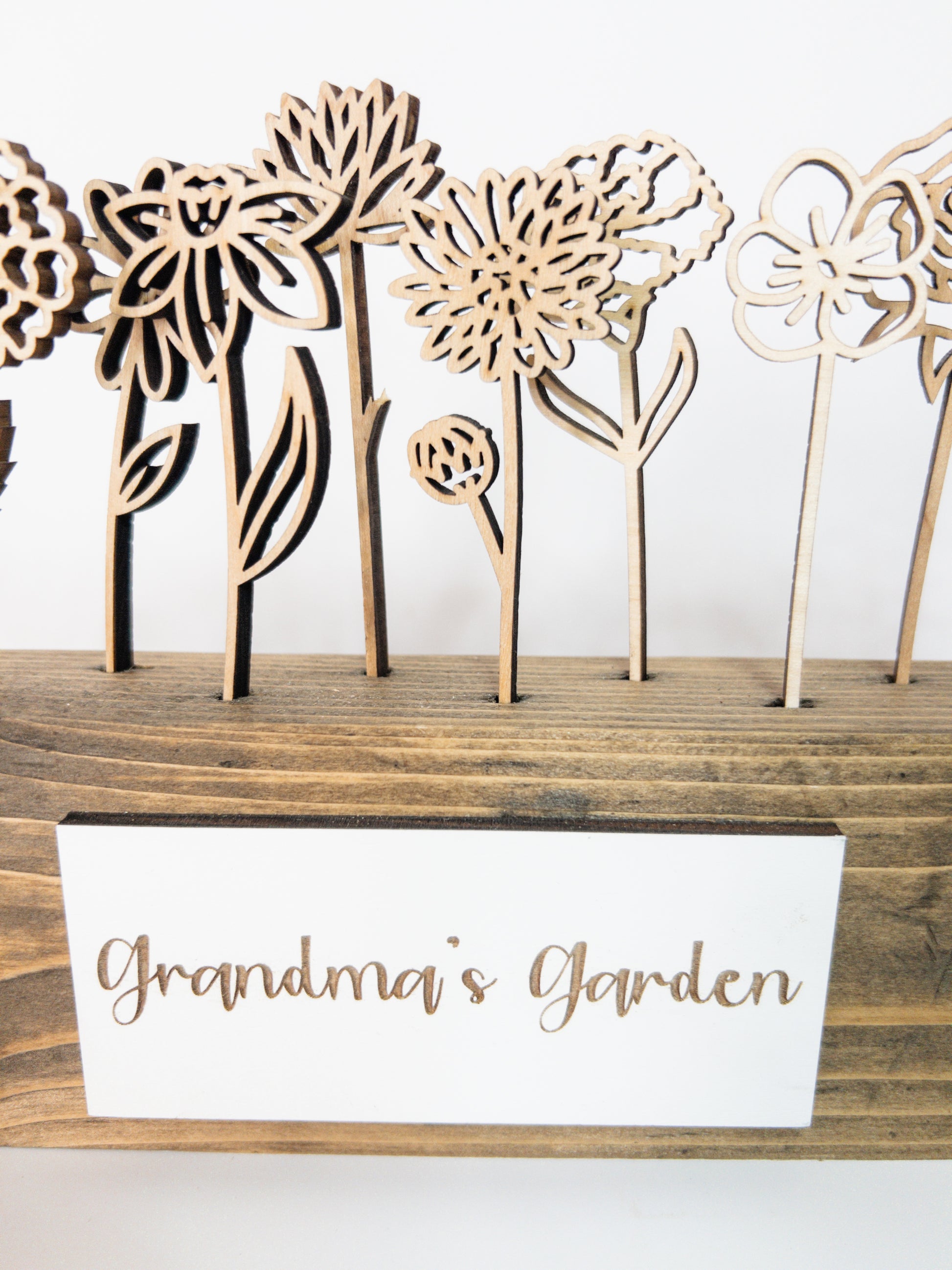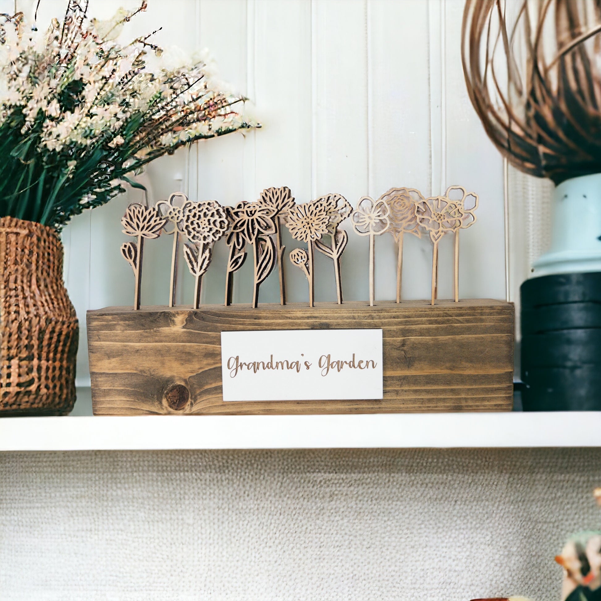 Grandma's Garden Wood Birth Month Flowers Display | Personalized Birth Flower Garden | Gift for Grandma or Mom | Custom Wood Home Décor