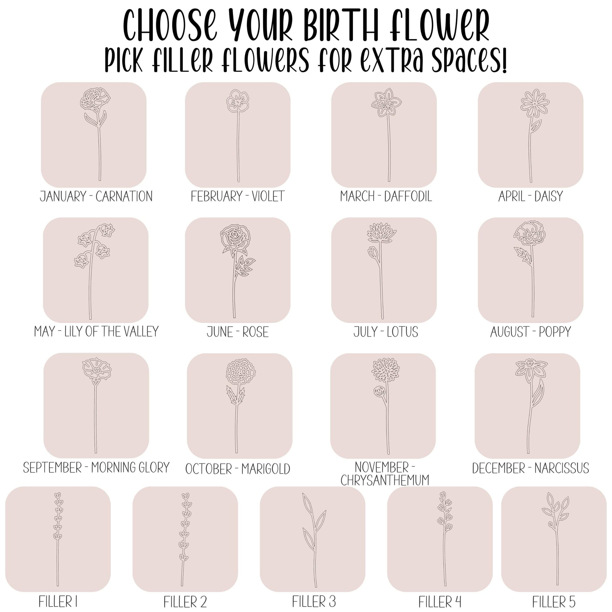 3. Utilize the personalization box to request what will be engraved on the front (ie "Grandma's Garden") and the birth month for each flower (ie 2 December, 1 July)