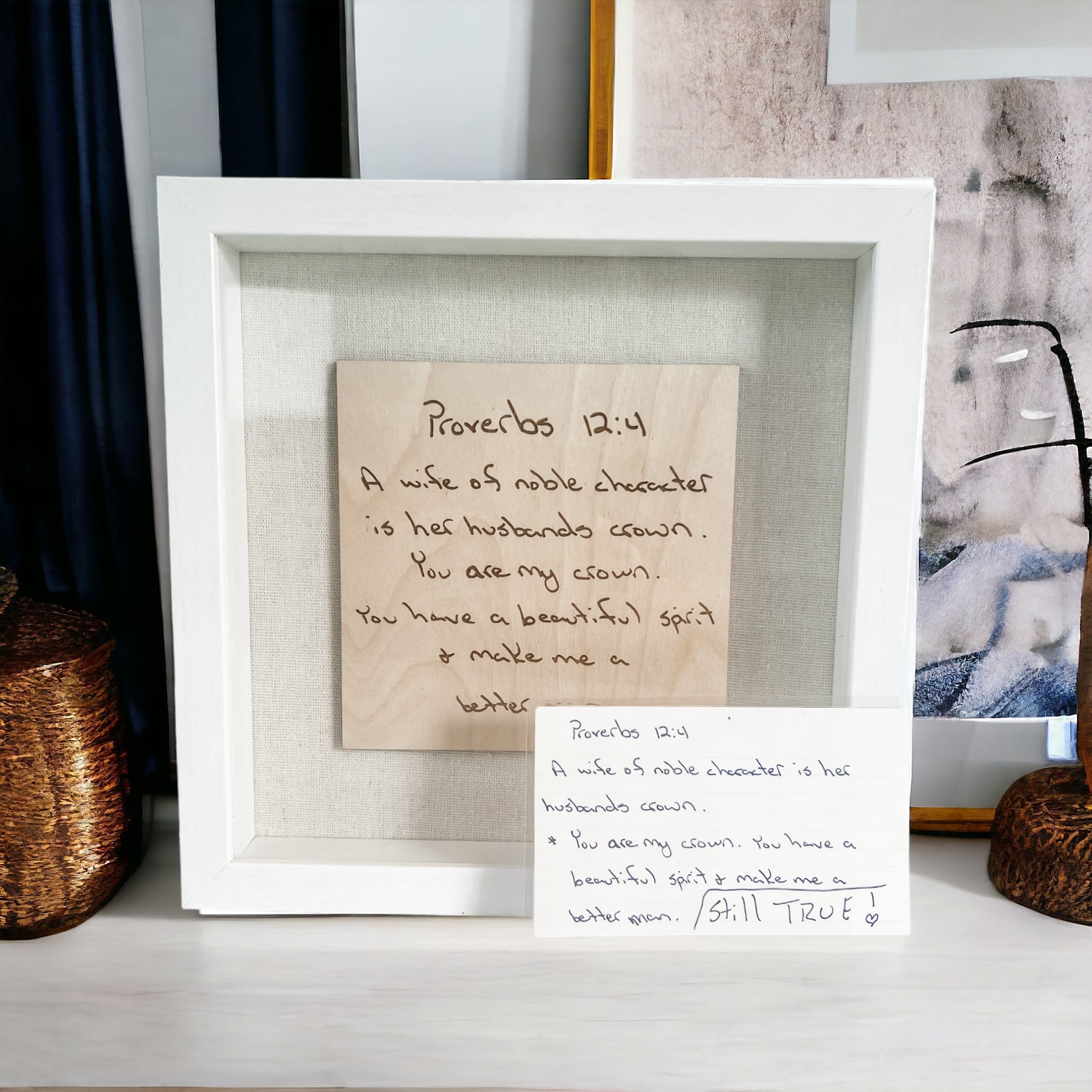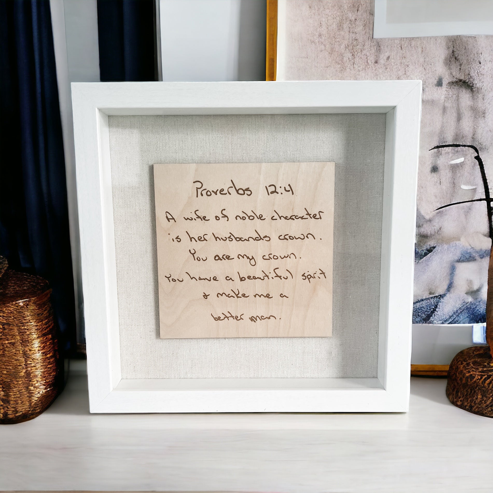 Elegant Design: The shadow box measures 9x9 inches, an ideal size for showcasing the precious words. Its white frame adds a classic, clean look, suitable for any decor style.