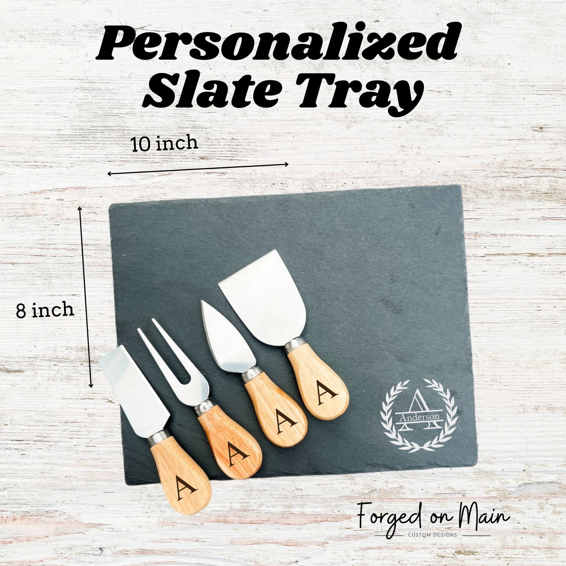 Add a touch of timeless charm to your next gathering with our Personalized Slate Cheese Tray. Measuring 10” x 8”, this natural slate board is laser engraved with the design of your choice, making it the perfect gift for weddings, housewarmings, anniversaries, or holiday hosts.
