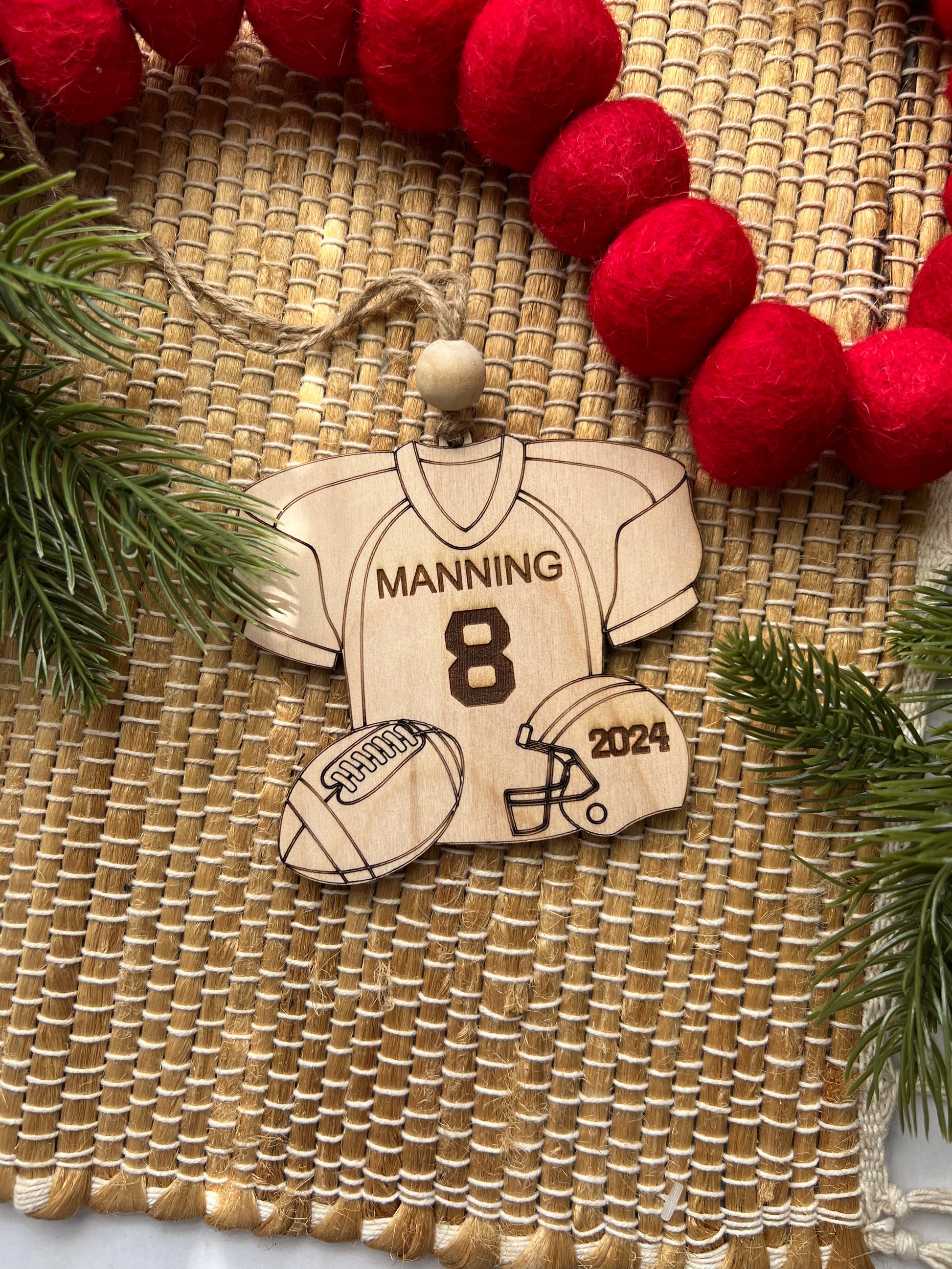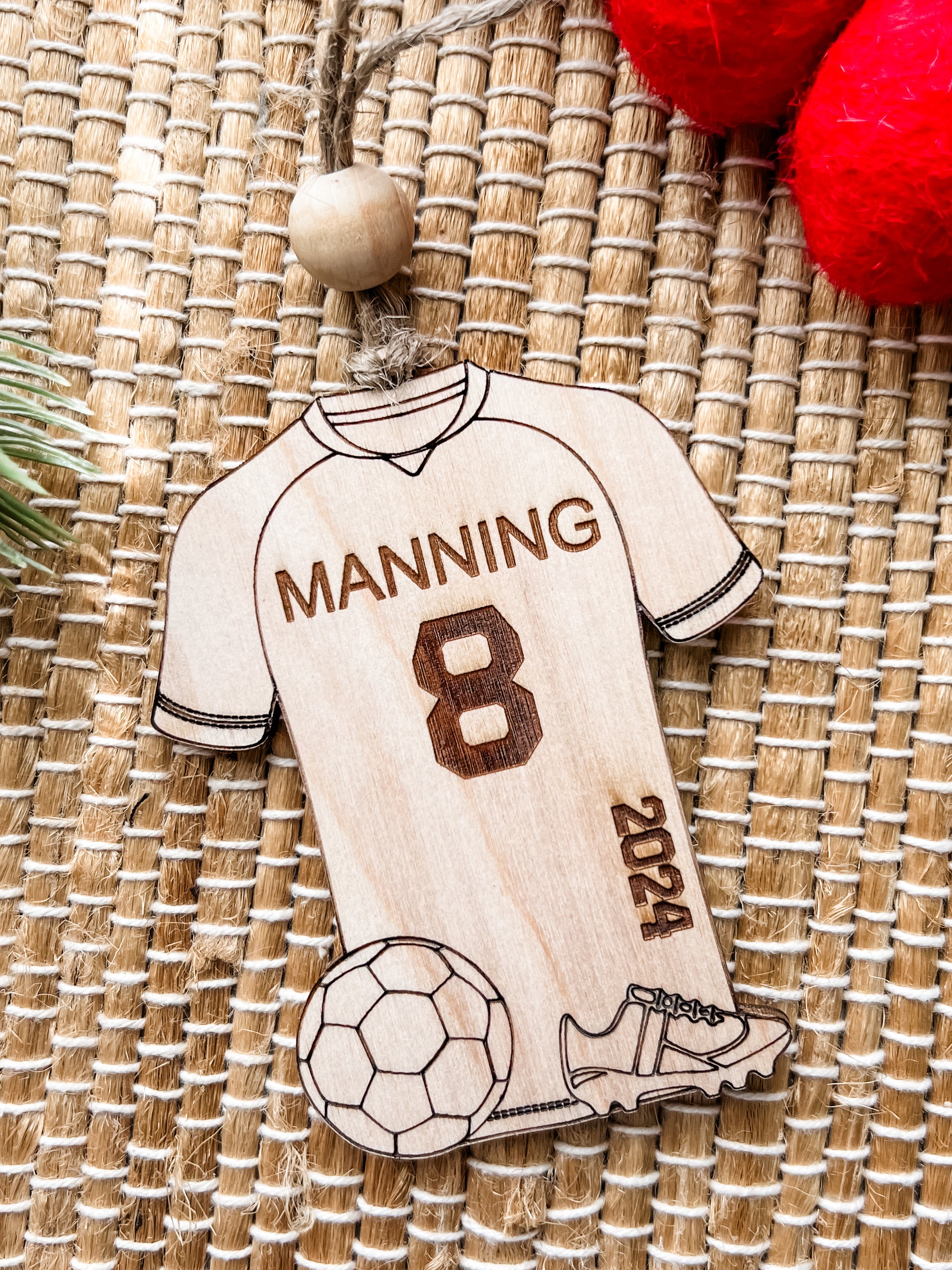 Celebrate your favorite athlete with these personalized sports jersey ornaments! Each ornament is custom engraved with the name, number, and year, making it a special keepsake for soccer, baseball, or football fans. Perfect for honoring a player’s hard work or commemorating a memorable season, these ornaments add a personal touch to any holiday tree or gift. A unique way to showcase team spirit and make lasting memories!