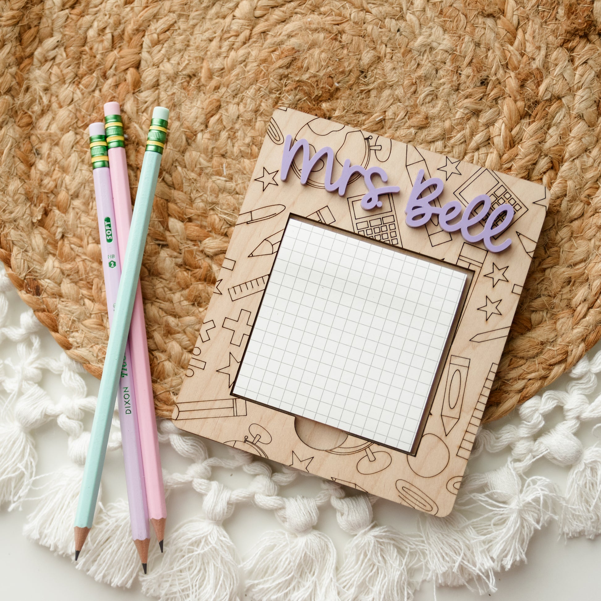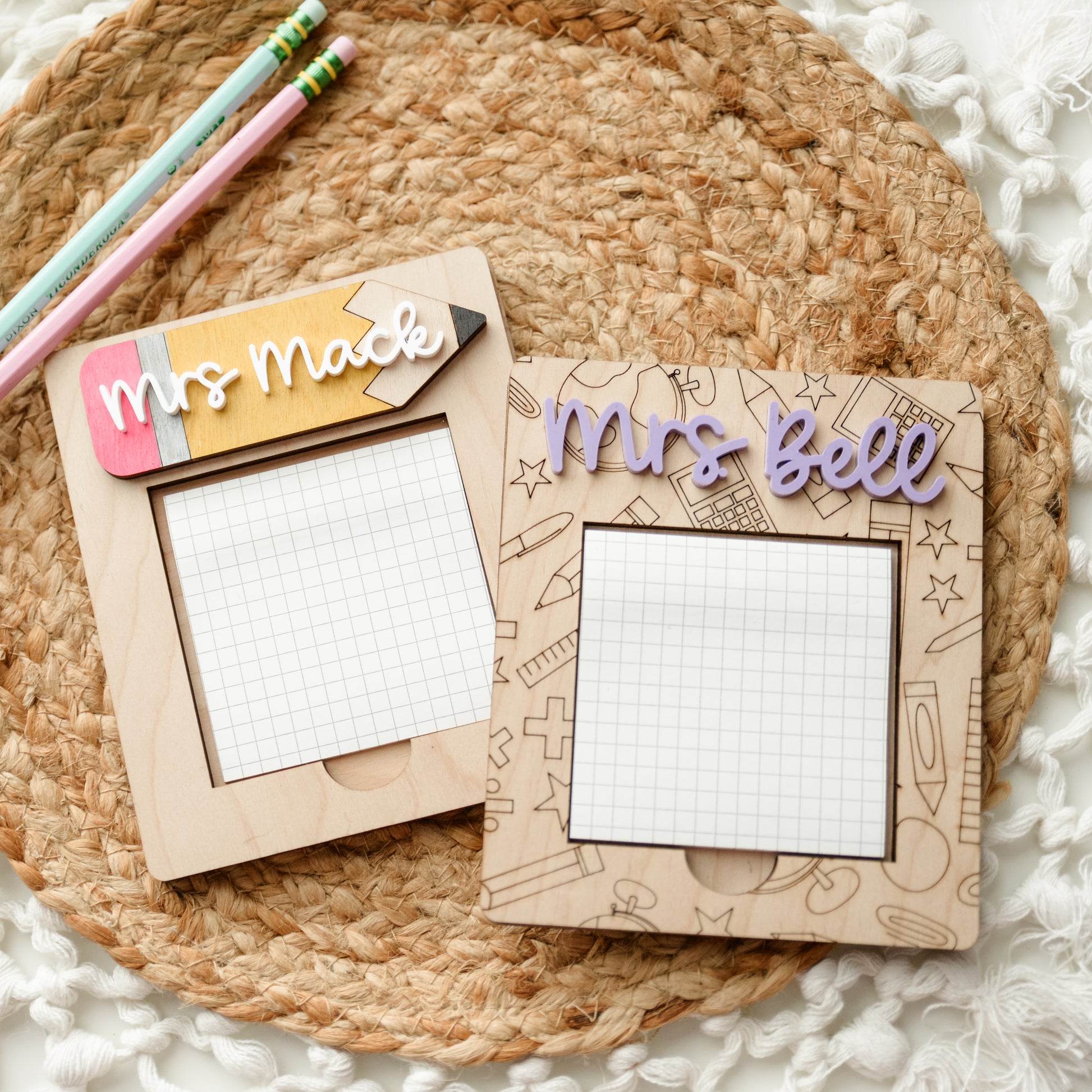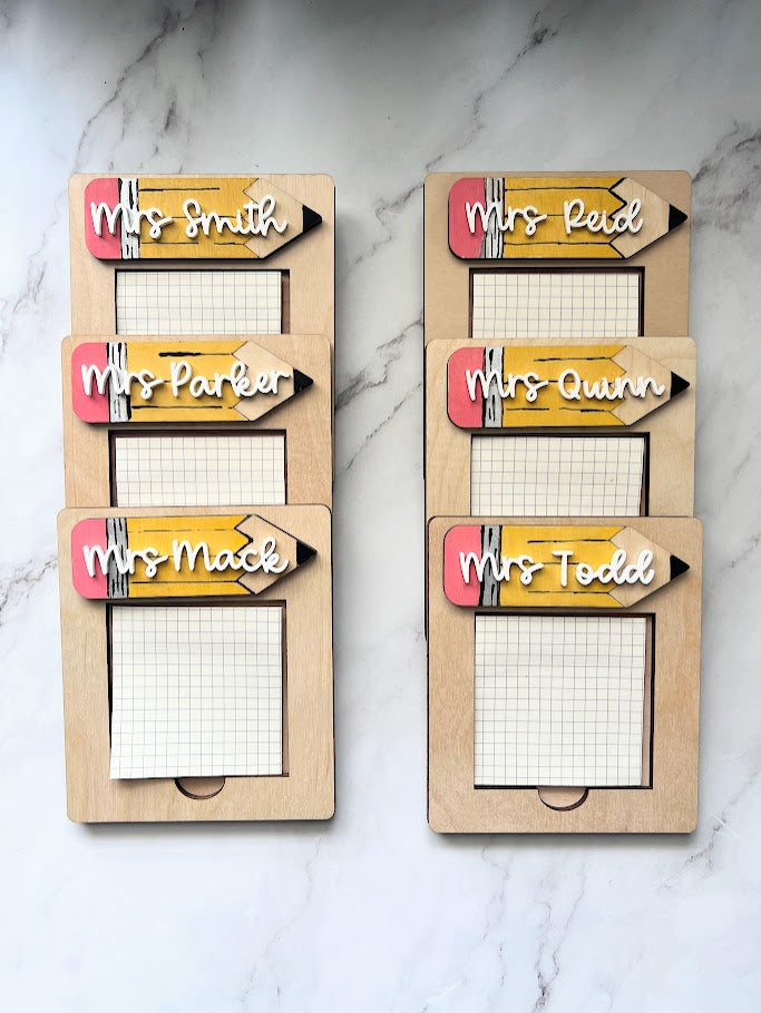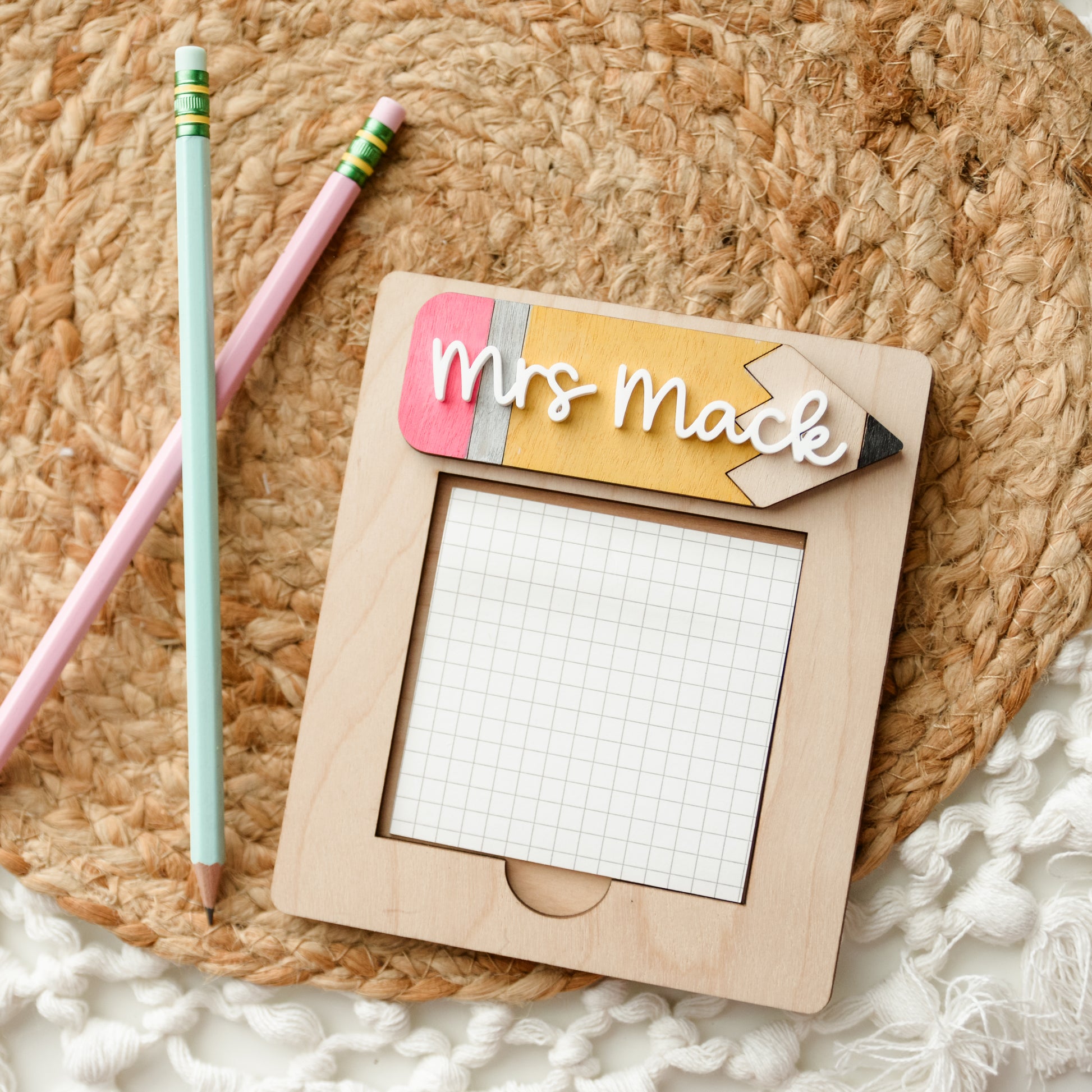 Personalized Teacher Sticky Note Holder – Pencil Design