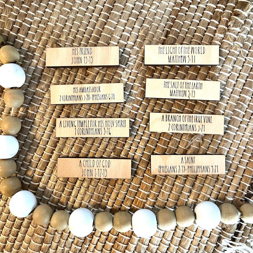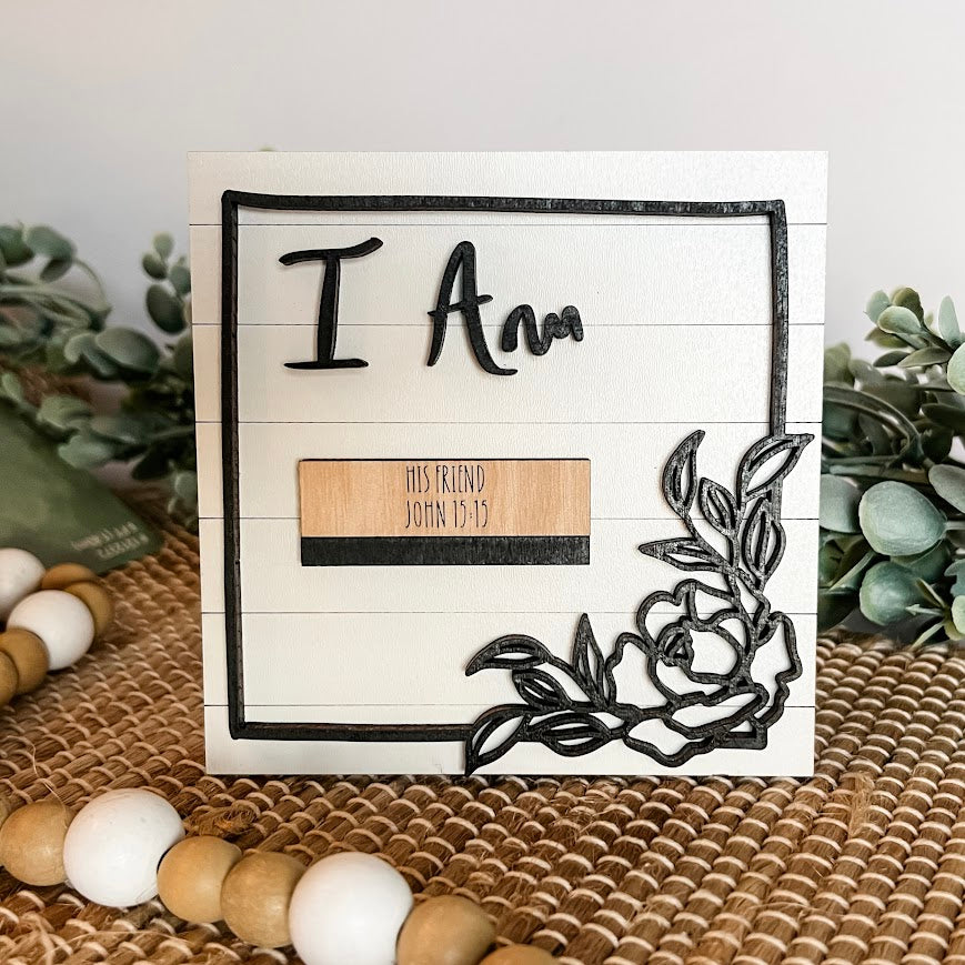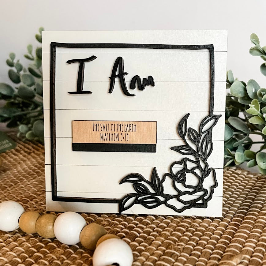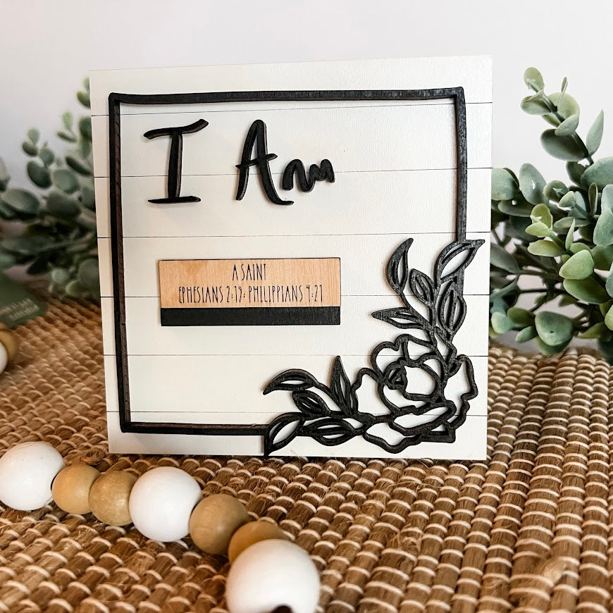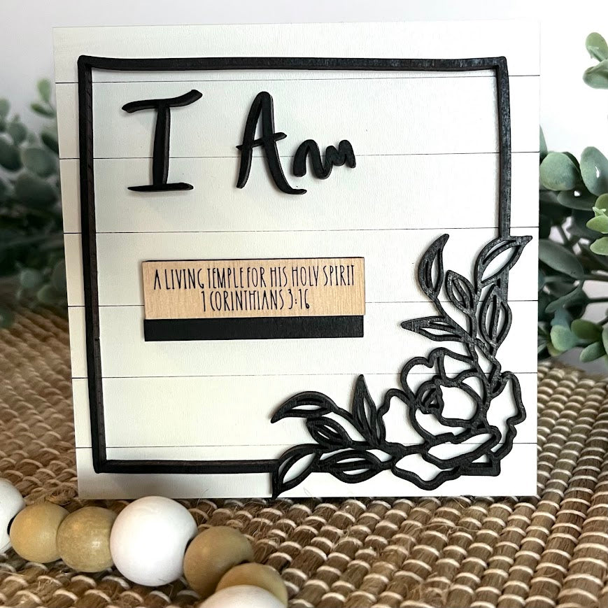 This beautifully crafted Christian plaque is a powerful daily reminder of your identity in Christ. Featuring a white base with black lettering, this sign comes with 9 interchangeable scripture pieces to keep your faith centered. Ideal for home decor, gifts, and encouragement!